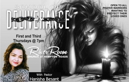 Pastor Hanisha Besant teaches this Spirit led, Christ-centered, biblical course that focuses on equipping individuals with the knowledge and skills necessary to bring about personal spiritual transformation through deliverance and healing. The weekly trainings often include practical instruction in spiritual disciplines and practices, such as fasting, intercessory prayer, and Scripture study, as well as renunciation prayers. The purpose of the school is to help individuals receive their own personal deliverance from spiritual bondage and to equip them with the knowledge and skills necessary to bring spiritual healing to others in their community.Each teaching builds from the previous and the Holy Spirit moves in a mighty way each and every teaching.