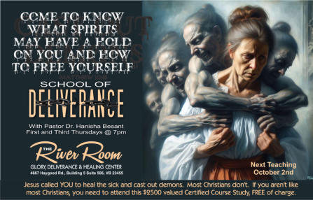 Pastor Hanisha Besant teaches this Spirit led, Christ-centered, biblical course that focuses on equipping individuals with the knowledge and skills necessary to bring about personal spiritual transformation through deliverance and healing. The weekly trainings often include practical instruction in spiritual disciplines and practices, such as fasting, intercessory prayer, and Scripture study, as well as renunciation prayers. The purpose of the school is to help individuals receive their own personal deliverance from spiritual bondage and to equip them with the knowledge and skills necessary to bring spiritual healing to others in their community.Each teaching builds from the previous and the Holy Spirit moves in a mighty way each and every teaching.